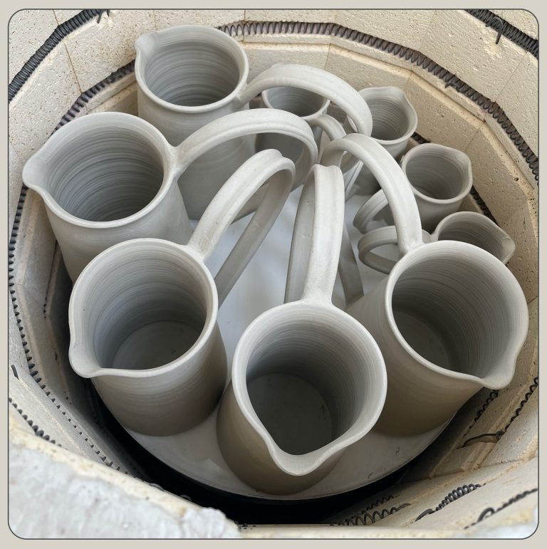 After dipping the bisqueware in the glaze and leaving it to dry it needs to have its second firing. This time to cone 6 (1240 degrees celsius), this takes approximately 8 hours as we can go up a little faster.